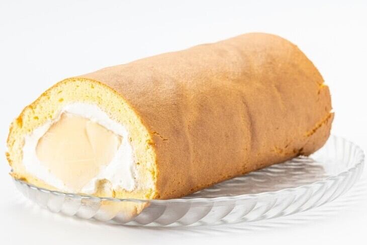 昔懐かしいプリンを丸ごとロールケーキの中に入れました。